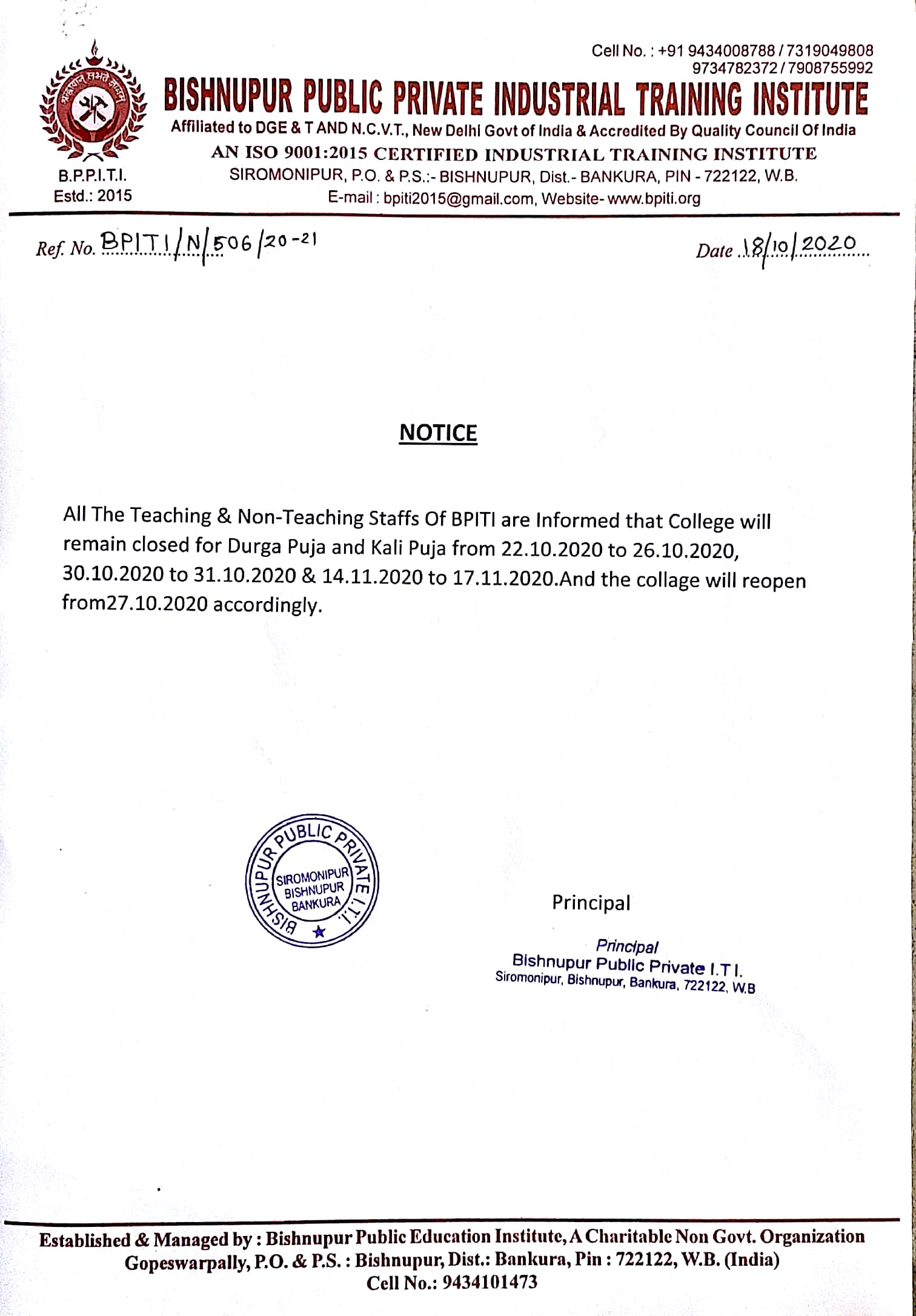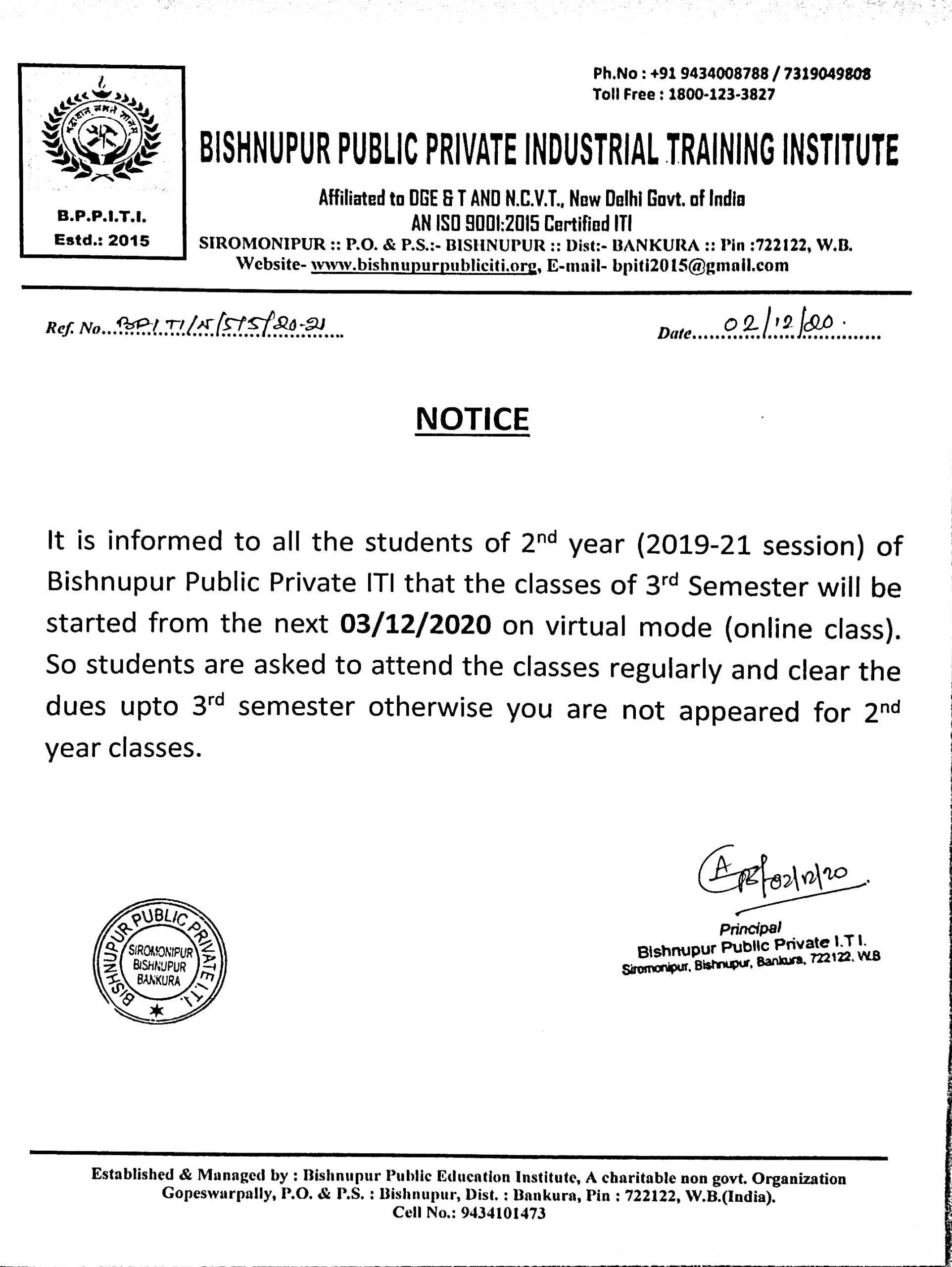 Bishnupur Public Industrial Training Institute, established in 2015, is a unique endeavour of Bishnupur Public Education Society. It is affiliated to N.C.V.T., New Delhi & accredited by Quality Council Of India. Few young entrepreneurs of Bishnupur founded a trust with a dream to set-up an Education Hub at Bishnupur. The whole endeavour is being headed by Mr. SatyaSadhan Dutta, a man of distinguished personality, innovative ideas and indomitable courage.